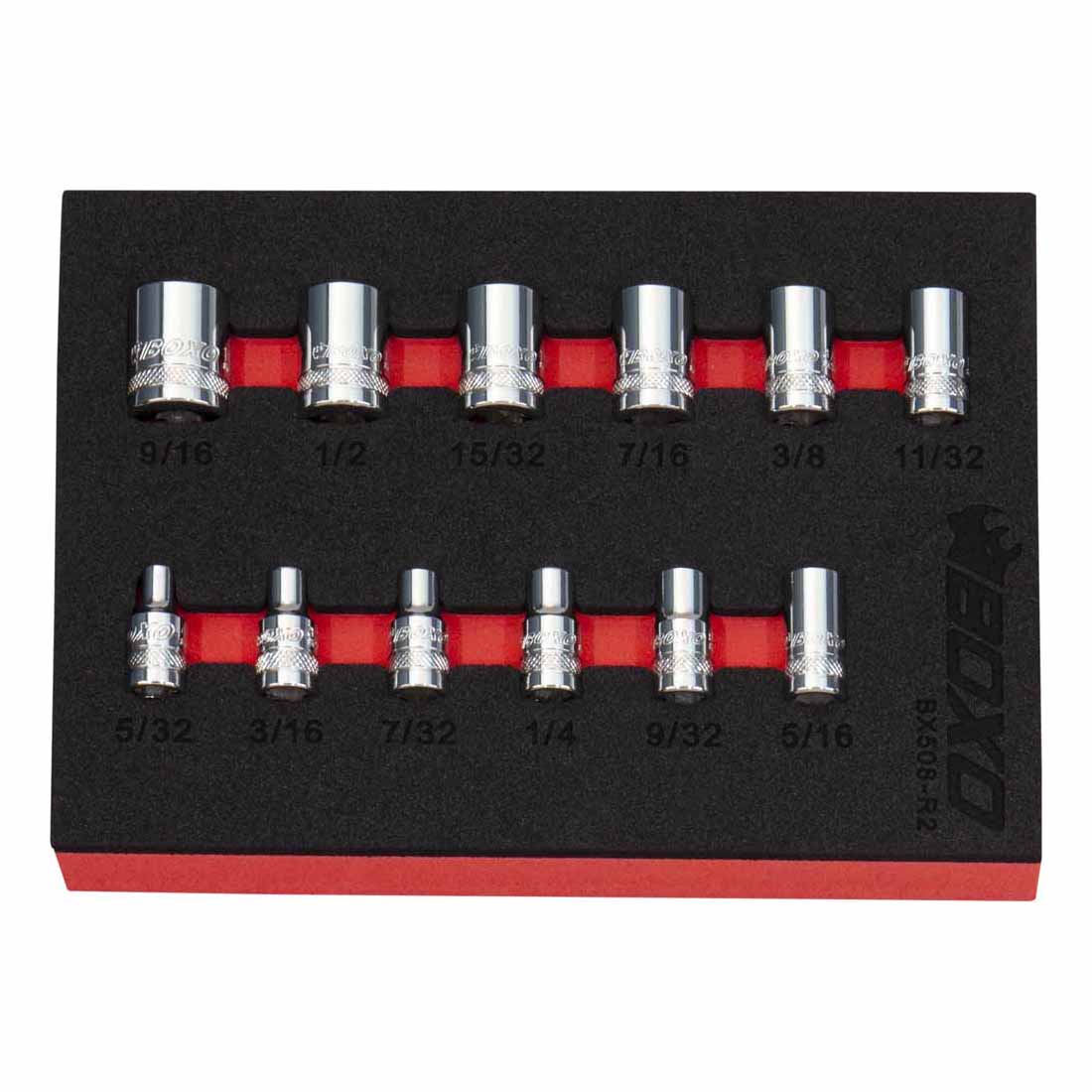 BOXO 12Pc 1/4" Imperial 12PT Socket Set