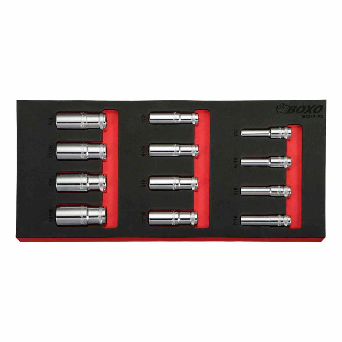 BOXO 12Pc 3/8" Imperial 12PT Deep Socket Set