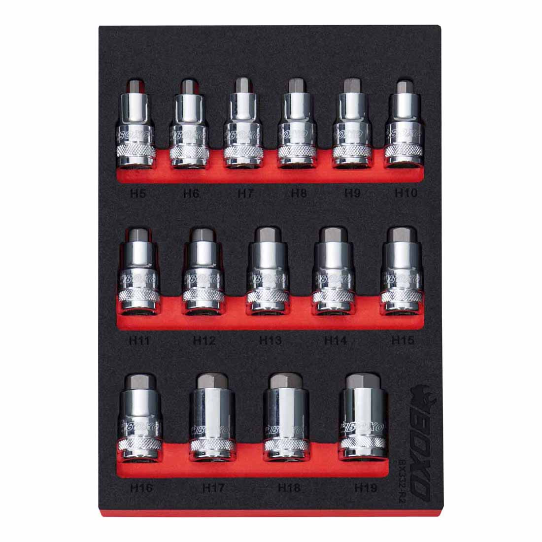 BOXO 15Pc 1/2" Super Stubby Hex Bit Socket Set