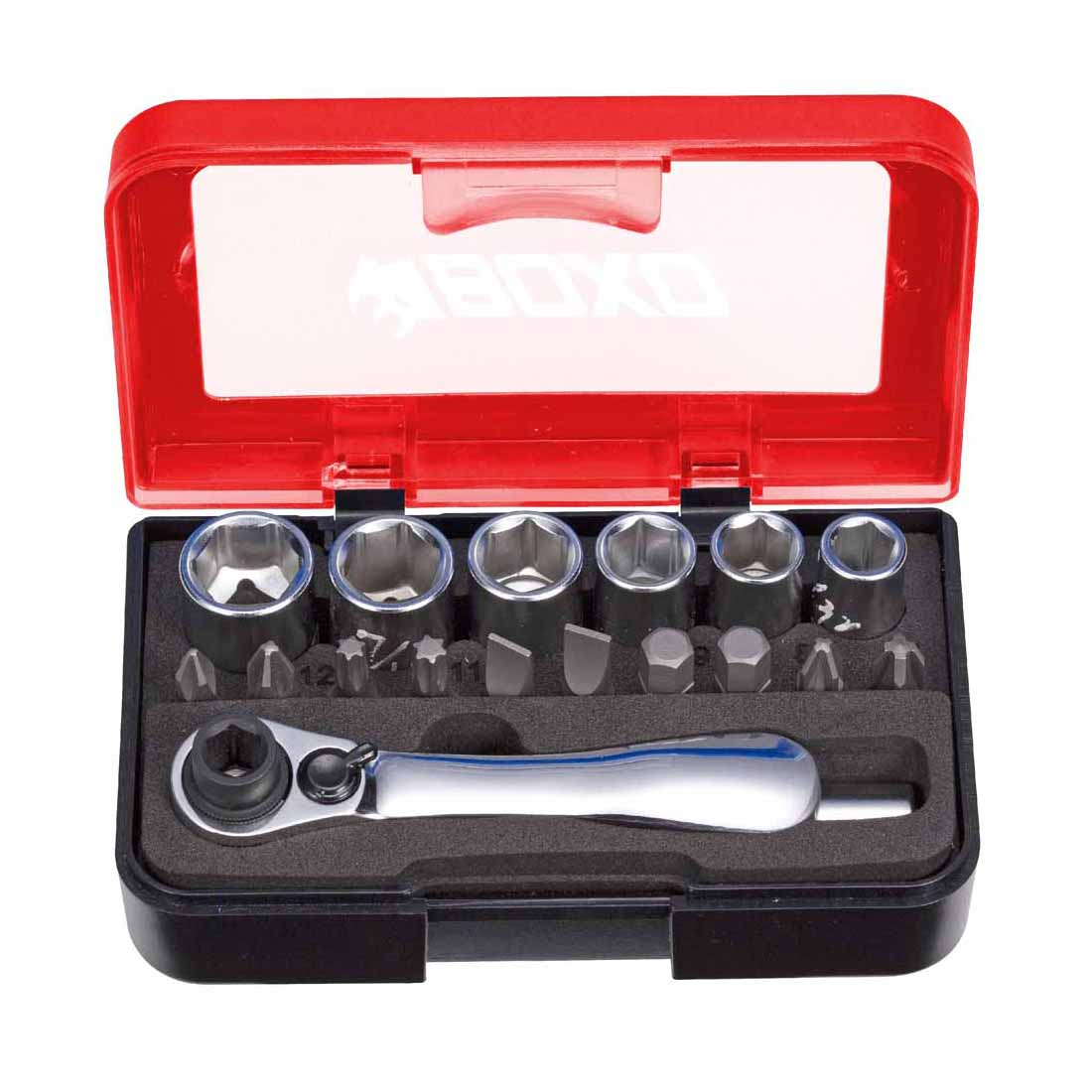 BOXO 18Pc 1/4" Socket Set with Dual Function Ratchet