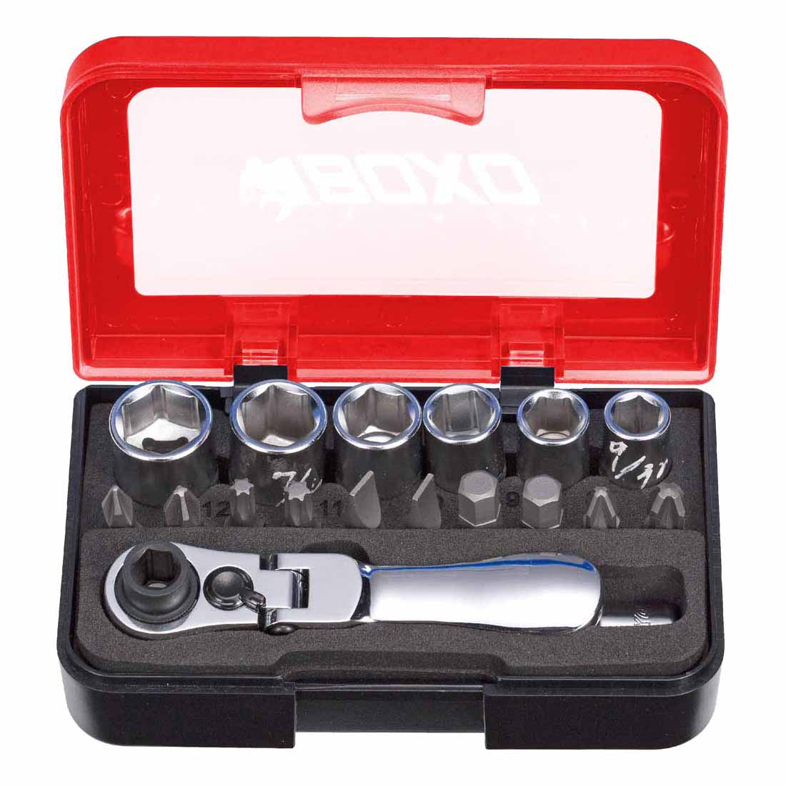 BOXO 18PC 1/4" Socket Set with Dual Function Flex-Head Ratchet