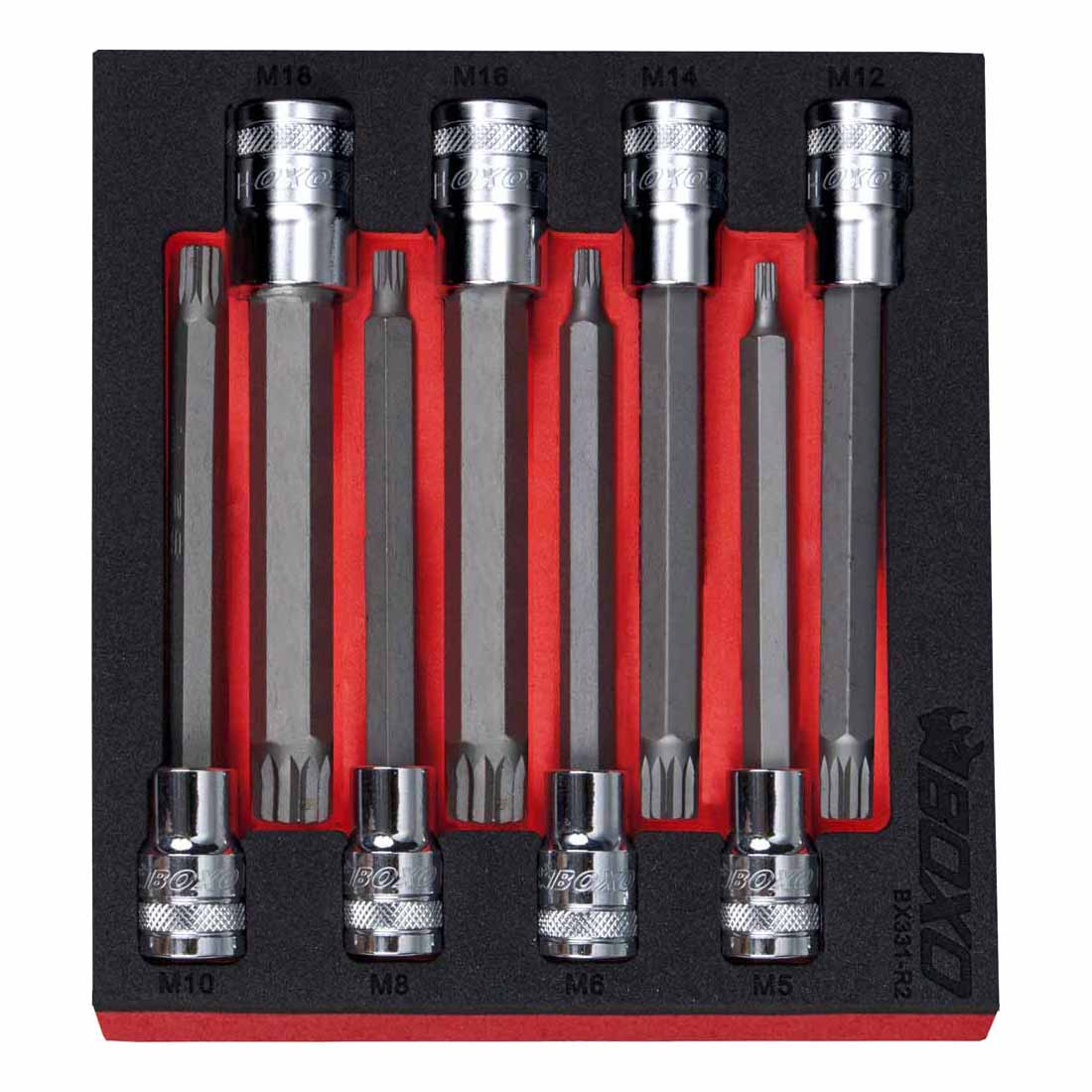 BOXO 8Pc 1/2" Long Spline Bit Socket Set