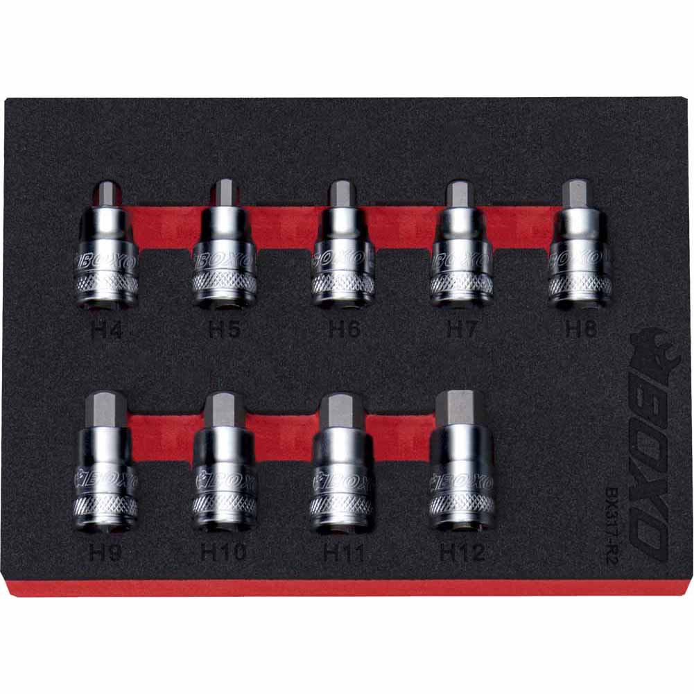 BOXO 9Pc 3/8" Super Stubby Hex Bit Socket Set