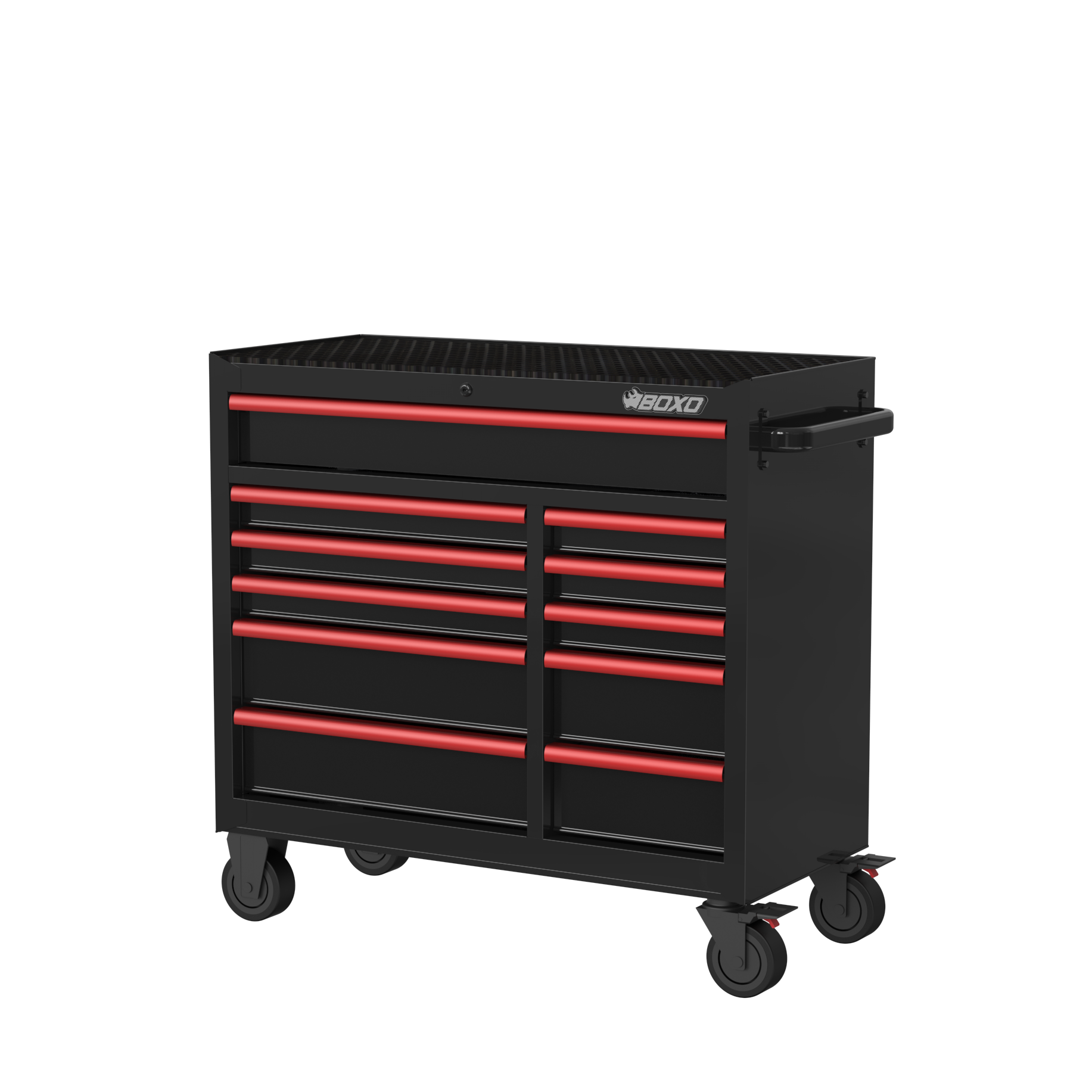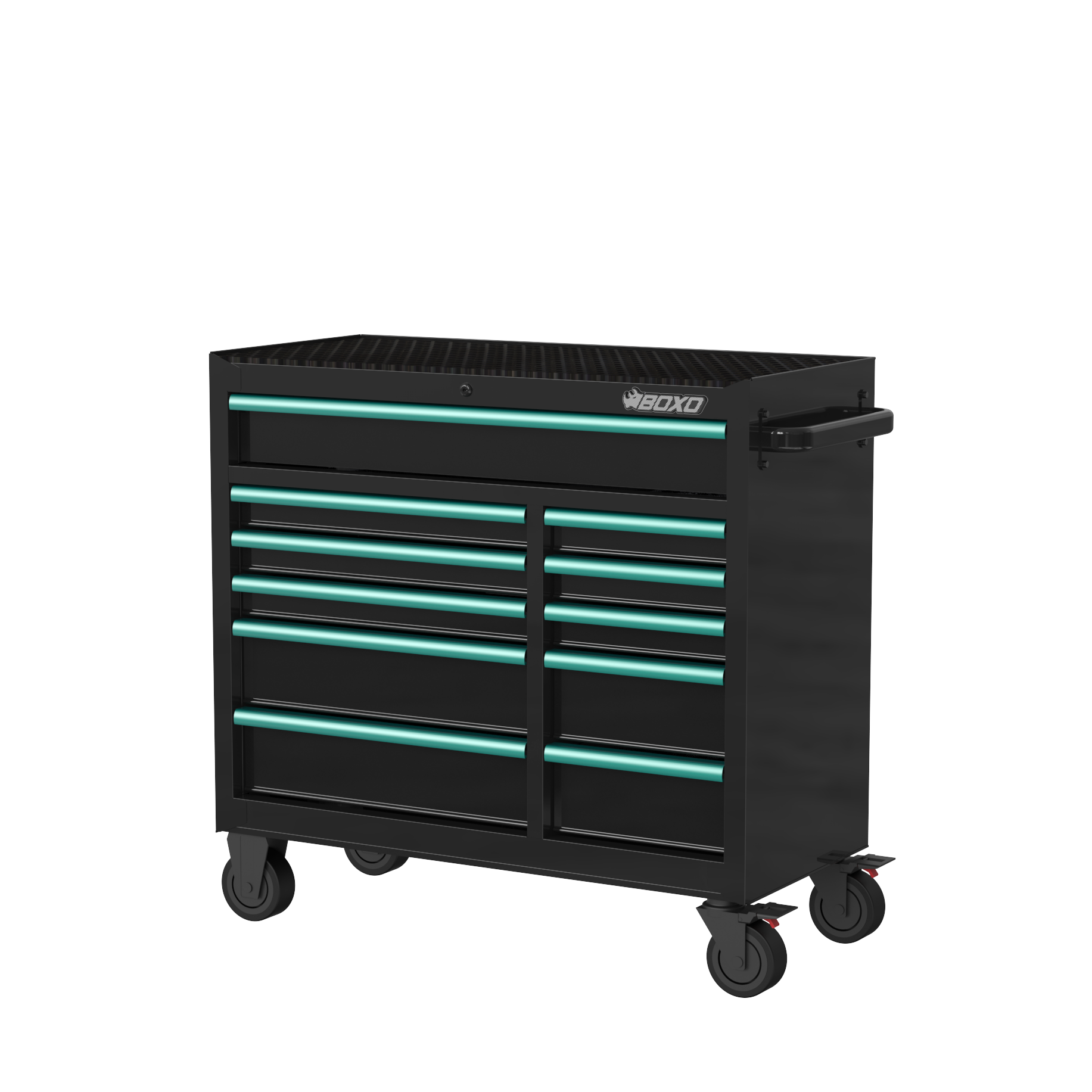 BOXO 41" 11 Drawer Roll Cabinet with Drawer Trim Pack - Black Body with Coloured Trim Pack