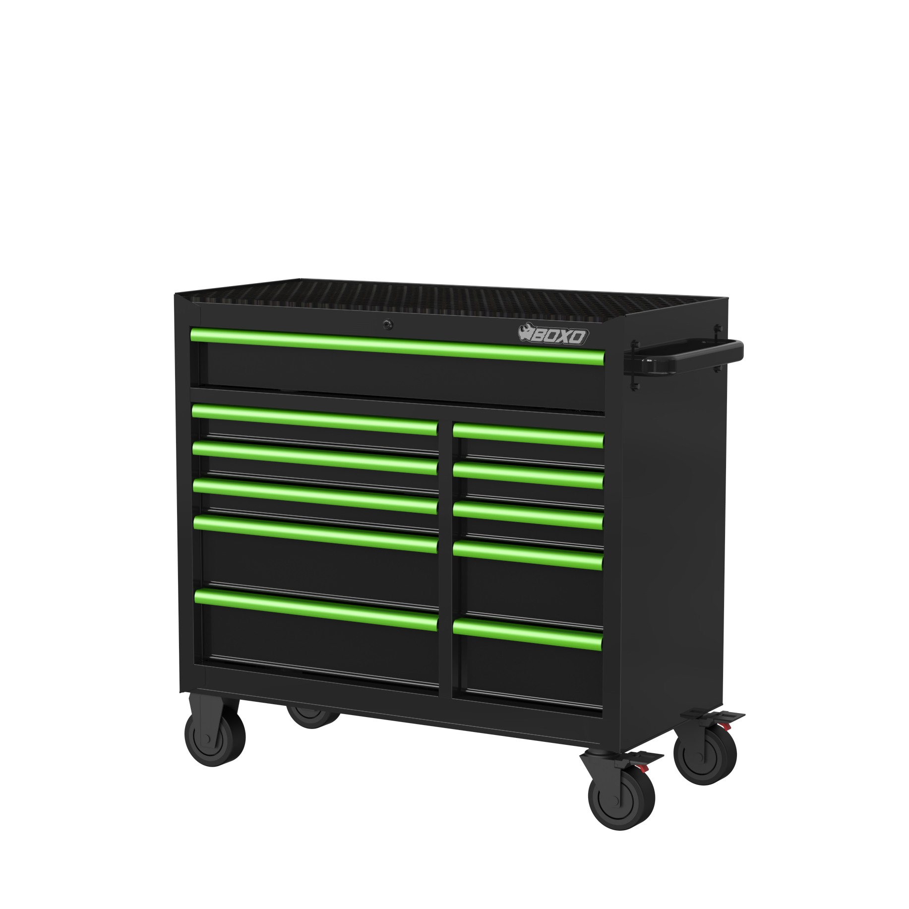 BOXO 41" 11 Drawer Roll Cabinet with Drawer Trim Pack - Black Body with Coloured Trim Pack