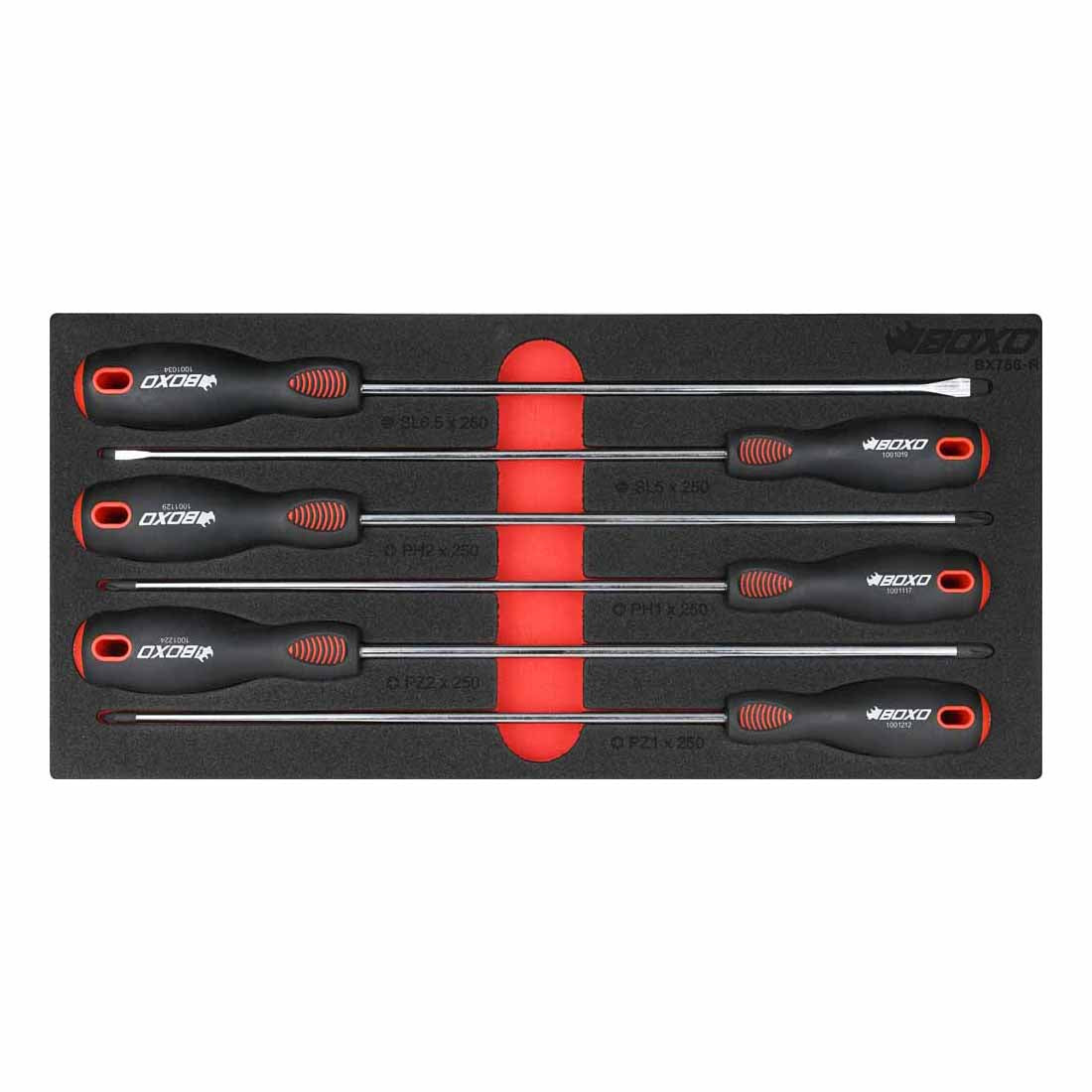 BOXO 6Pc 250mm Long Screwdriver Set in EVA Foam